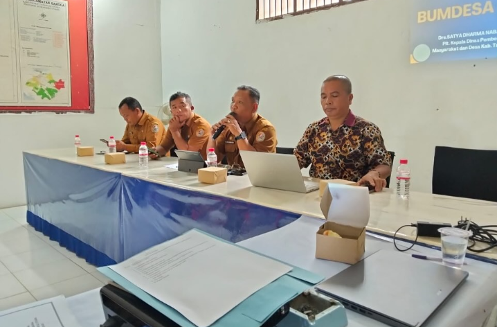 Rapat dipimpin oleh Plt. Kadis PMD Satya Dharma Nababan dan dihadiri Camat Garoga Ade Harry Situmorang, para kepala desa, serta direktur BUMDes.